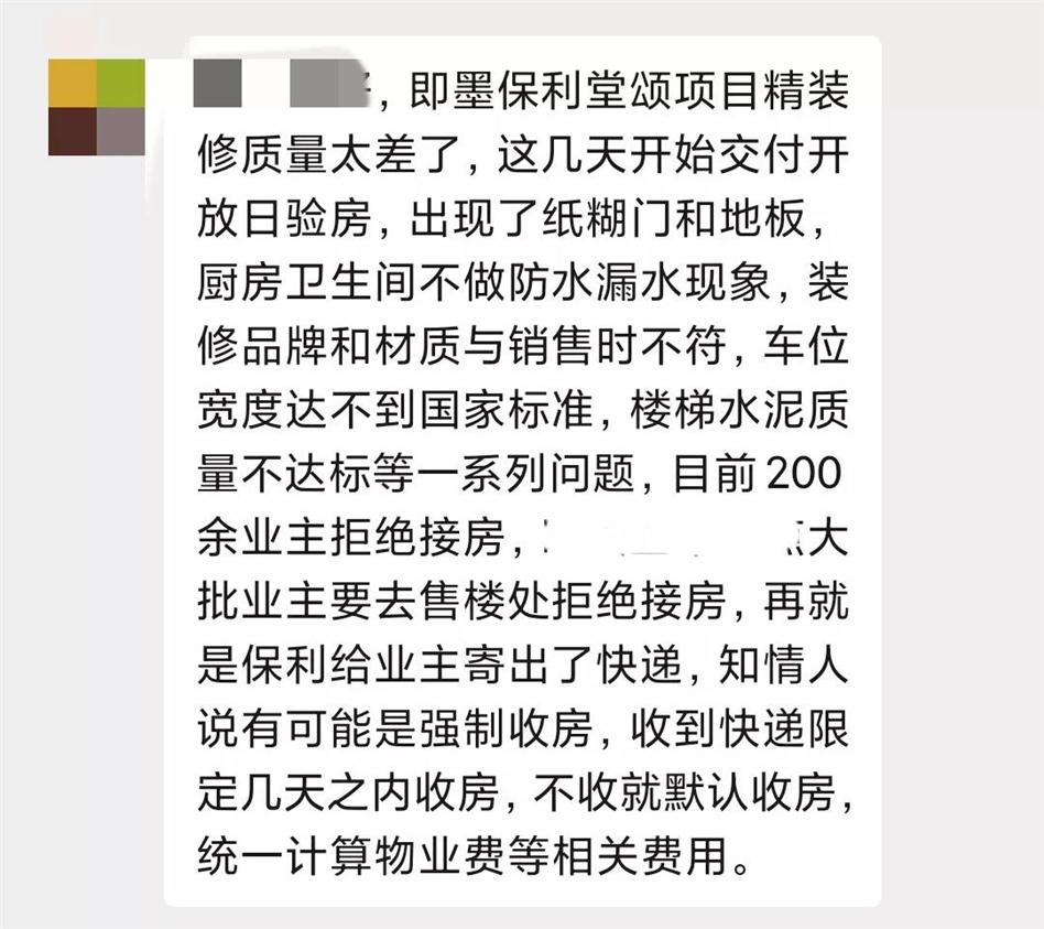 即墨保利堂頌精裝修曝出大問題!
