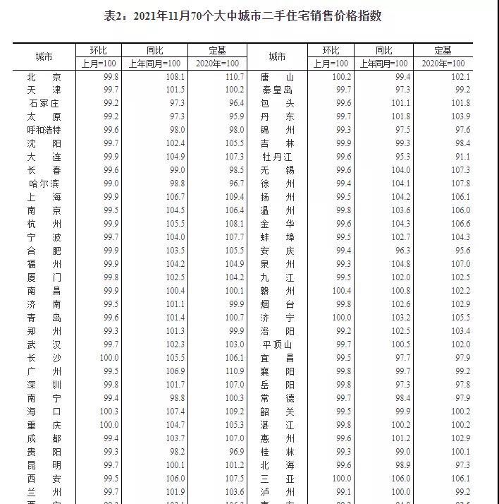 12月15日,國家統(tǒng)計局發(fā)布2021年11月份70個大中城市商品住宅銷售價格變動情況統(tǒng)計數(shù)據(jù)。根據(jù)最新統(tǒng)計顯示,2021年11月青島新建商品住宅銷售價格環(huán)比下降0.3%,二手房價格環(huán)比持續(xù)走低,降幅呈擴大態(tài)勢。其中,新房售價出現(xiàn)“兩連跌”,二手房“三連跌”。值得注意的是,全國70個城市中,11月份房價出現(xiàn)環(huán)比下跌的城市數(shù)量達59個,這是2015年3月份以來房價下跌城市數(shù)量最多的一次。