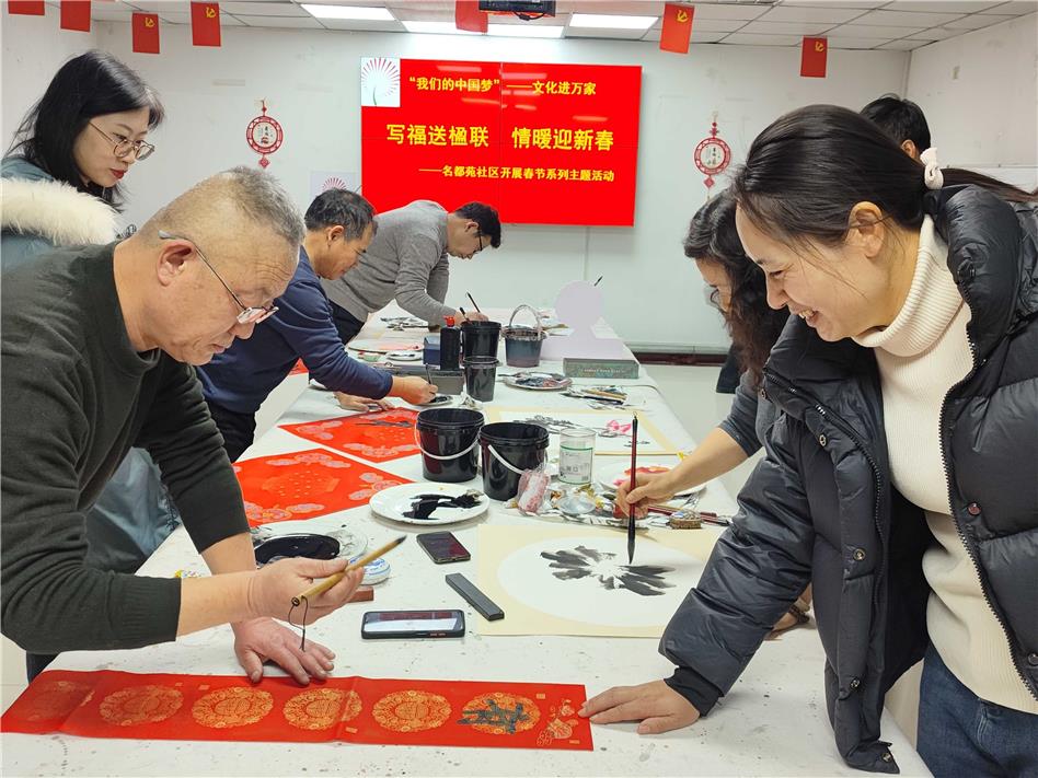 為弘揚(yáng)家庭傳統(tǒng)文化,培育良好家風(fēng),推進(jìn)社區(qū)家庭文明建設(shè),即墨區(qū)潮海街道名都苑社區(qū)于1月23日上午,邀請(qǐng)書畫名家及區(qū)文明家庭組織開展“我們的節(jié)日•歡樂(lè)中國(guó)年”主題活動(dòng),活動(dòng)吸引社區(qū)40多名居民參與。