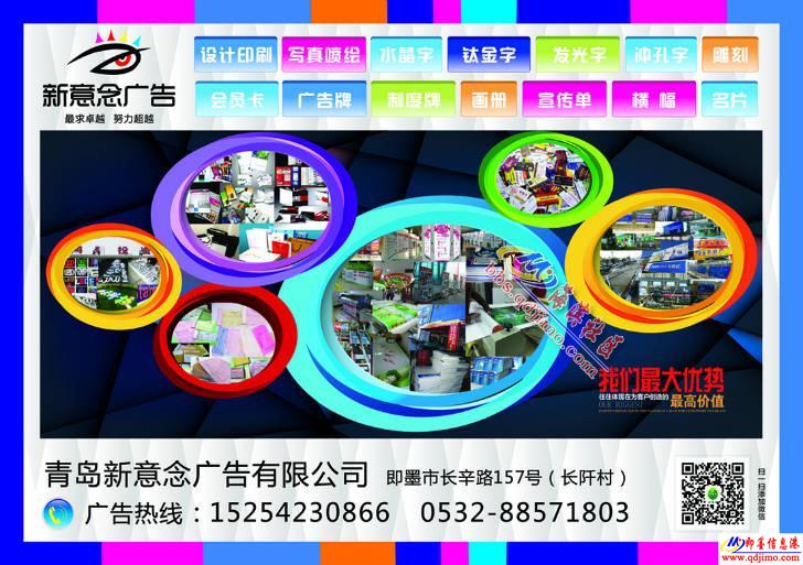 我公司是專業(yè)從事即墨設計印刷,即墨寫真噴繪,即墨會展,即墨桁架舞臺搭建,即墨門頭燈箱,即墨廣告牌制度牌,即墨發(fā)光字沖孔字,即墨展架易拉寶,即墨畫冊宣傳單等平面廣告的設計制作,已有十余年的制作經(jīng)驗,擁有國際最先進的寫真機噴繪機雕刻機等廣告設備,歡迎廣大客戶前來淺談合作。