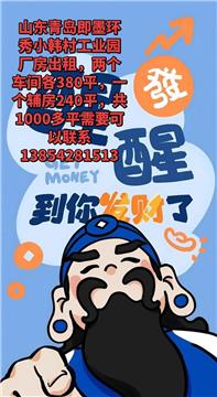 即墨環(huán)秀小韓村工業(yè)園獨(dú)門獨(dú)院廠房,兩個(gè)車間各380平,一個(gè)輔房240平,共1000多平。交通好,位置好,院子大。