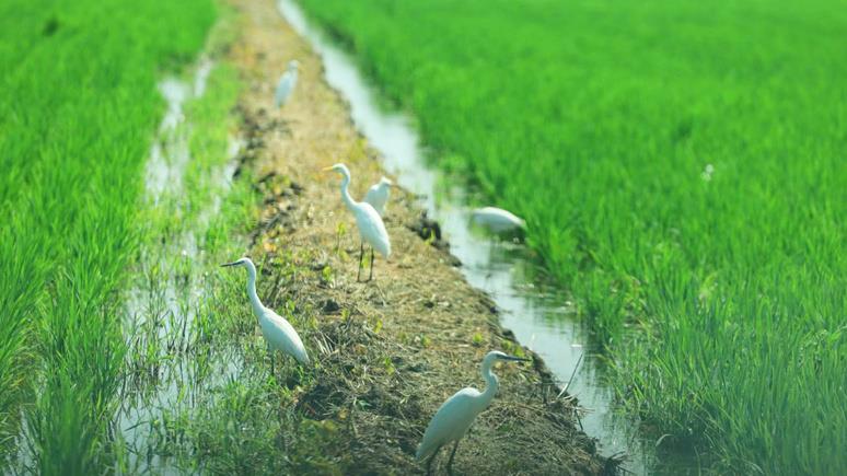 這里環(huán)境優(yōu)美、水質(zhì)優(yōu)良,稻田便成了白鷺的樂園。