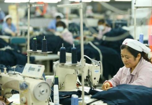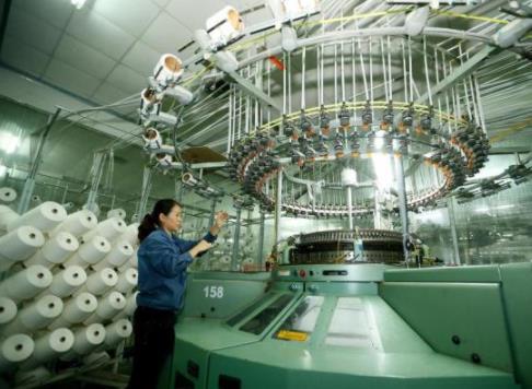 11月24日,青島市即墨區(qū)龍山街道一家企業(yè)的工人在生產(chǎn)服裝面料。