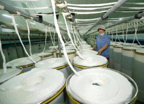 11月24日,青島市即墨區(qū)龍山街道一家企業(yè)的紡紗工人在生產(chǎn)棉紗產(chǎn)品。