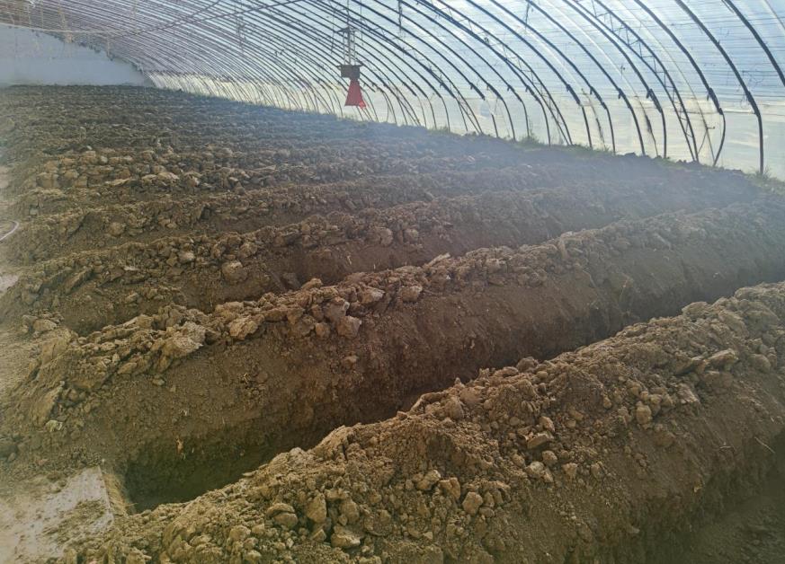 在即墨即發(fā)農(nóng)業(yè)園,技術(shù)人員在棚內(nèi)挖溝、填秸稈、撒菌種,這是在秸稈生物反應(yīng)堆肥料化利用的現(xiàn)場(chǎng),工作人員介紹道:秸稈生物反應(yīng)堆可解決傳統(tǒng)大棚土壤板結(jié)、鹽漬化、土傳病害和線蟲嚴(yán)重等連作障礙問題。秸稈通過加入微生物菌劑,在通氣條件下,被分解為二氧化碳、有機(jī)質(zhì)和礦物質(zhì),并產(chǎn)生一定的熱量和大量抗病蟲的菌孢子,促進(jìn)農(nóng)作物更好的生長。