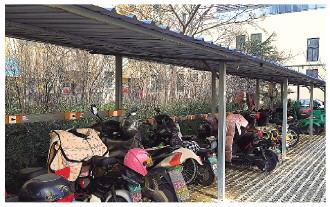 世貿(mào)商都小區(qū)電動(dòng)車在車棚內(nèi)擺放。