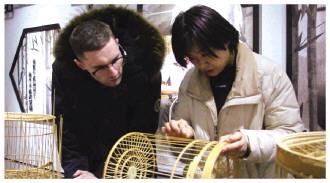隨后,Julian Millidge來到大歐村的鳥籠記憶館,深入了解大歐鳥籠的發(fā)展歷史,參觀了鳥籠的成品及其延伸物件,自己動手嘗試了穿籠絲等工藝。