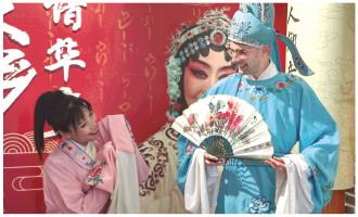 在即墨區(qū)柳腔博物館,講解員向Julian Millidge介紹了柳腔的起源與發(fā)展。在柳腔老師的帶領下,Julian Millidge打扮成小生扮相,沉浸式學習柳腔表演的形體動作和經(jīng)典唱段。柳腔起源于即墨大沽河流域,距今已有200多年的歷史,因其表演清新質(zhì)樸、風趣生動,被譽為“膠東之花”,是國家級非物質(zhì)文化遺產(chǎn)。