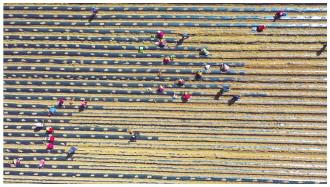 上圖:農(nóng)民使用專業(yè)工具栽種丹參。