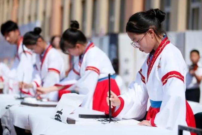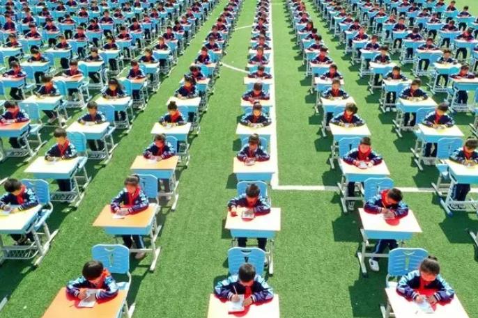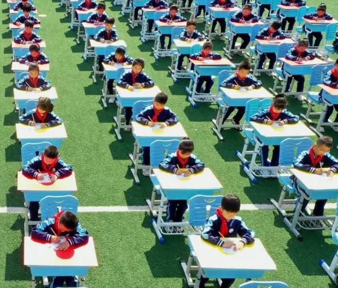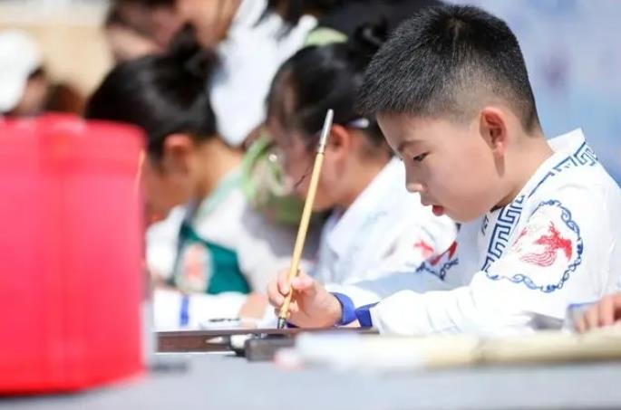校園賽書(shū)法,即墨千名小學(xué)生操場(chǎng)“擺擂臺(tái)”