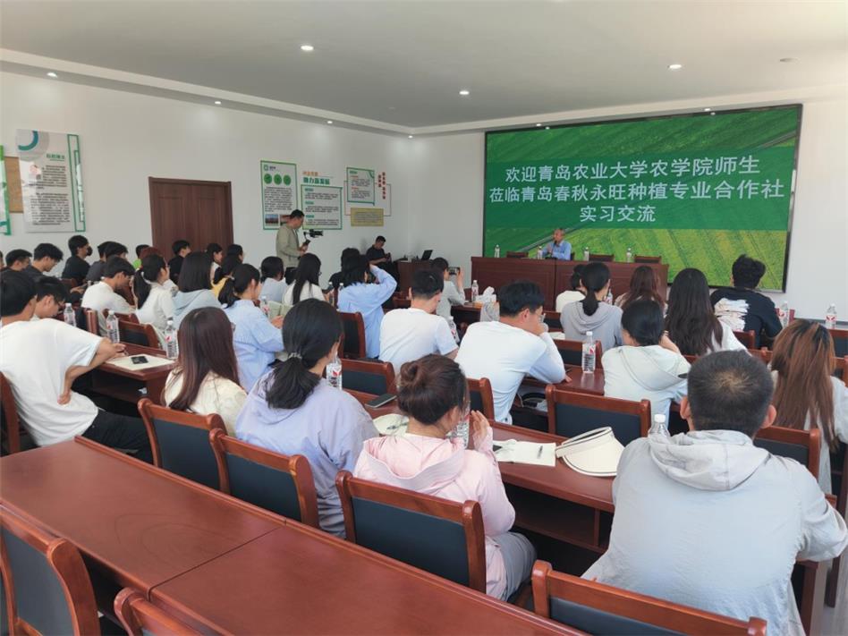 在壯武村“青島市綠色增糧先行示范區(qū)”內(nèi),來自農(nóng)學(xué)院的教授和德地得公司的專家,正在為學(xué)生們與春秋永旺合作社社員進行農(nóng)業(yè)綠色發(fā)展的有關(guān)知識和專業(yè)化種糧技能培訓(xùn)。