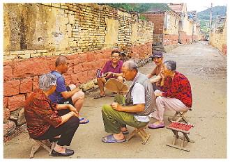 上圖:神湯溝村村民在干凈的村莊街道聊天。