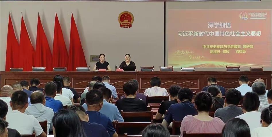 劉桂英教授以《深學(xué)細(xì)悟習(xí)近平新時(shí)代中國(guó)特色社會(huì)主義思想》為主題,結(jié)合當(dāng)前時(shí)事政治和工作實(shí)際,運(yùn)用生動(dòng)的案例和嚴(yán)謹(jǐn)?shù)姆治,深入淺出地闡述了習(xí)近平新時(shí)代中國(guó)特色社會(huì)主義思想的豐富內(nèi)涵和實(shí)踐要求。授課結(jié)束后,鎮(zhèn)機(jī)關(guān)干部紛紛踴躍發(fā)言,積極與劉教授交流探討,對(duì)習(xí)近平新時(shí)代中國(guó)特色社會(huì)主義思想有了更加全面、深入的了解。