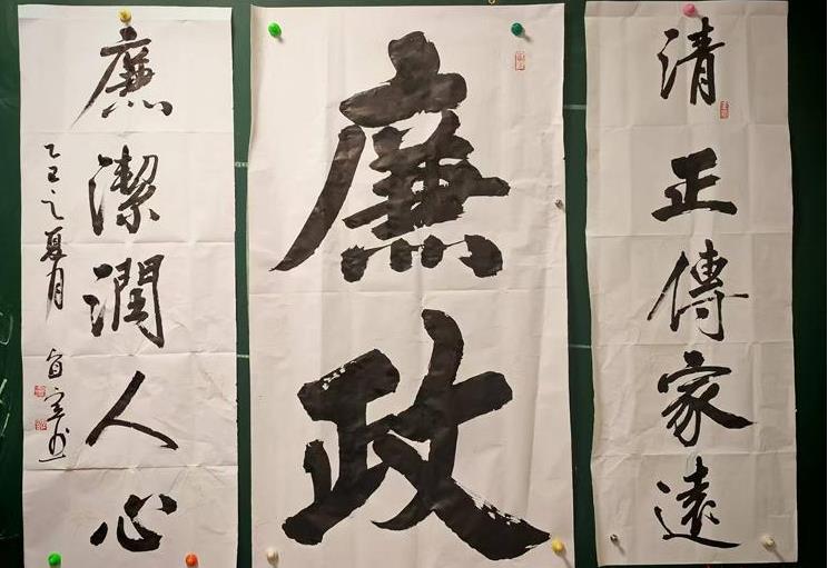 此次活動以“清風墨韻,廉潤社區(qū)”為主題,將傳統(tǒng)文化與廉政教育巧妙融合;顒蝇F(xiàn)場,書法愛好者們揮毫潑墨,其中以書法協(xié)會會員宋老師為首的書法家們以筆為劍、以墨為鋒,創(chuàng)作了一幅幅精美的廉政書法作品!傲撸裰硪;貪者,民之賊也”“公生明,廉生威”等廉政名言警句躍然紙上,筆鋒剛勁有力,寓意深刻。這些作品不僅展示了居民們的書法技藝,更傳遞出大家對廉潔自律的追求和對廉政文化的深刻理解。