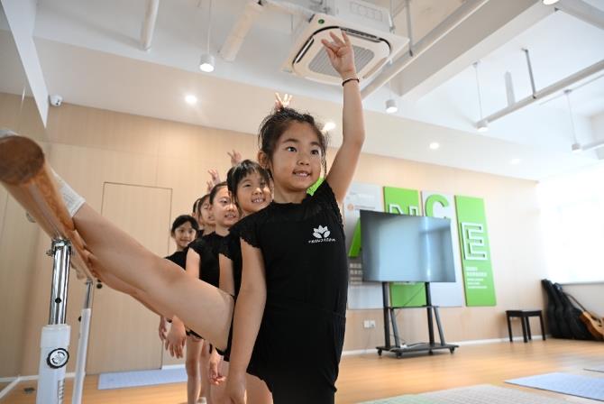7月17日,天氣炎熱,驕陽似火。記者在新惠社區(qū)涼爽的舞蹈培訓(xùn)室里看到,孩子們在老師的精心指導(dǎo)下練習(xí)舞蹈基本功。孩子們從練習(xí)站姿、坐姿開始,通過趴胯、側(cè)壓、旁壓腿等舒展動作來訓(xùn)練身體的柔軟度。黃淑芝是一名企業(yè)職工,由于工作忙一直未送孩子去興趣班,但是孩子特別喜歡堅持要學(xué)習(xí)舞蹈,所以今年暑假,她早早通過微信,報名參加了社區(qū)開辦的舞蹈培訓(xùn)班,讓孩子不出社區(qū)就能學(xué)習(xí)舞蹈,充實(shí)了寒假生活,對于她來說是既開心又放心。